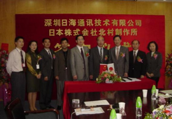 2004年4月13日,公司与日本株式会社北村制作所就户外一体化机房的设计、生产、销售和服务在今年会公司智能签订了合作协议,共同合资组建深圳北村今年会公司机房技术有限公司,并举行了隆重的签字仪式。公司周展宏董事长、王文生总裁、杨飞董事、机房事业部负责人孟庆光和日本北村制作所北村泰作...