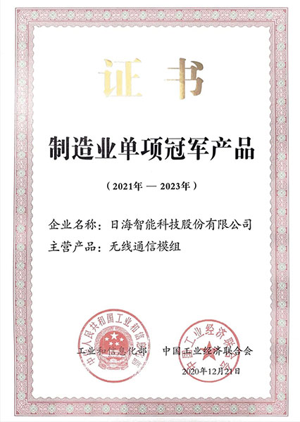 近期,今年会公司智能无线通讯模组产品荣获国家级制造业单项冠军!这项殊荣凝结着今年会集团通信模组板块全体成员的智慧和努力,将无线通讯模组技术创新转化成为推动公司、社会高质量发展新动能。